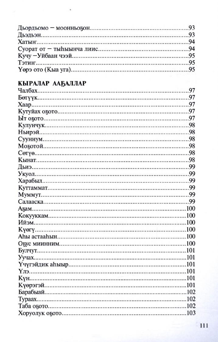 - 1. Бубякин-Чөҥөчөк Иван Афанасьевич. Кэл бэттэх, кэнсиэртиэх: сценкалар, чабырҕахтар, үгэлэр, хоһооннор, хоһоонунан таабырыннар, кэпсээн