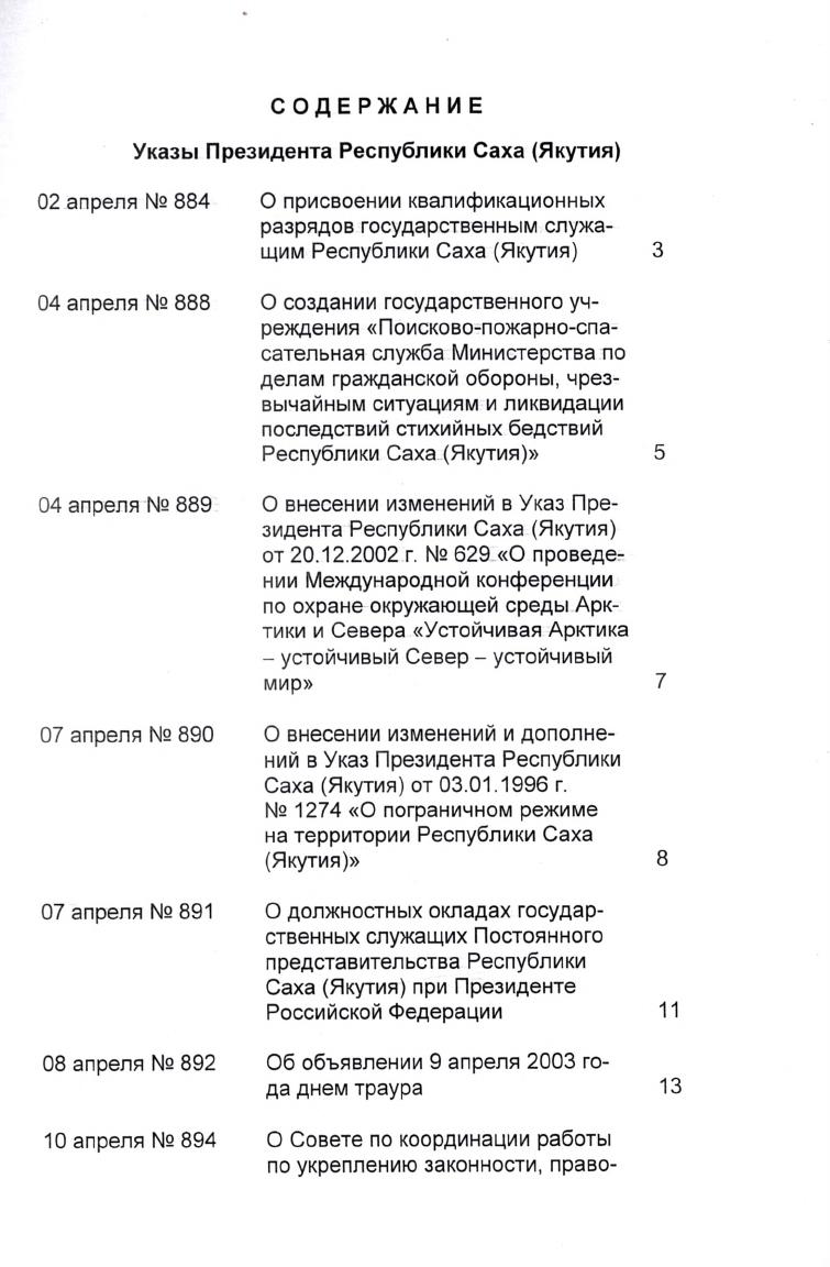Сборник указов и распоряжений Президента Республики Саха (Якутия)