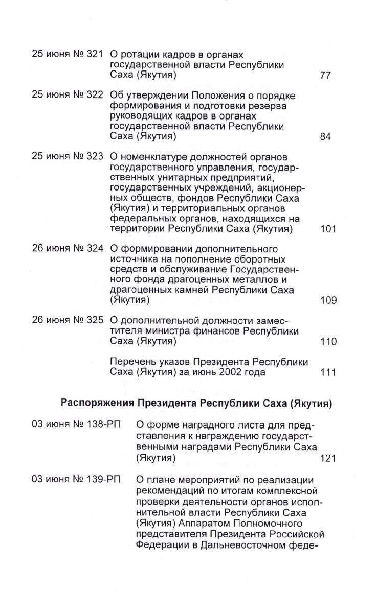 Сборник указов и распоряжений Президента Республики Саха (Якутия)