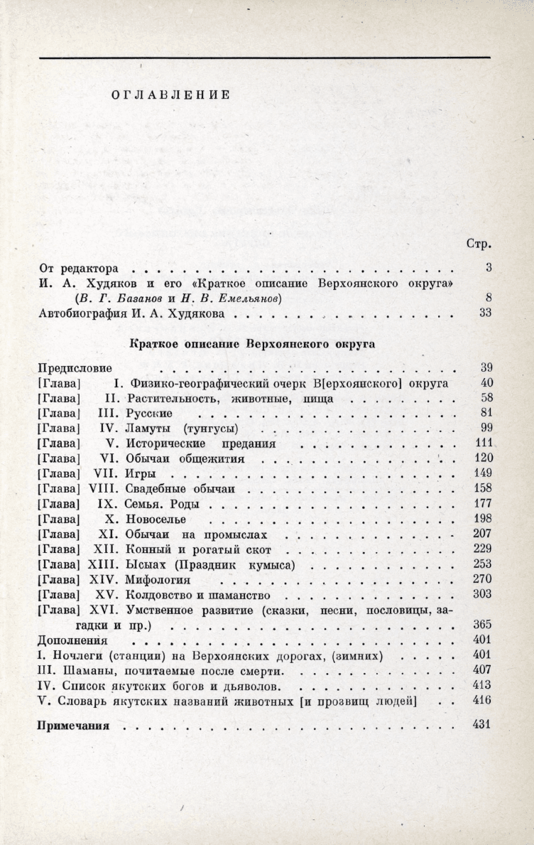 Краткое описание Верхоянского округа / И. А. Худяков ; под редакцией В. Г. Базанова ; [подготовка текста О. Б. Алексеевой ; редакция якутских текстов и примечания: Г. У. Эргиса, Н. В. Емельянова, П. Е. Ефремова ; вступительная статья В. Г. Базанова и Н. В. Емельянова] ; Академия наук СССР, Институт русской литературы (Пушкинский дом), Институт истории, языка и литературы Якутский филиал Сибирского отделения. - Ленинград : Наука, Ленинградское отделение, 1969. - 437, [2] с.