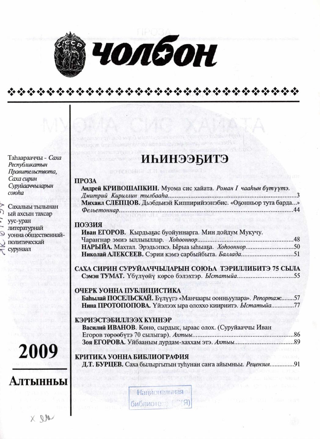- 2. Чолбон: уус-уран литературнай уонна общественнай-политическай сурунаал, 2009, №2