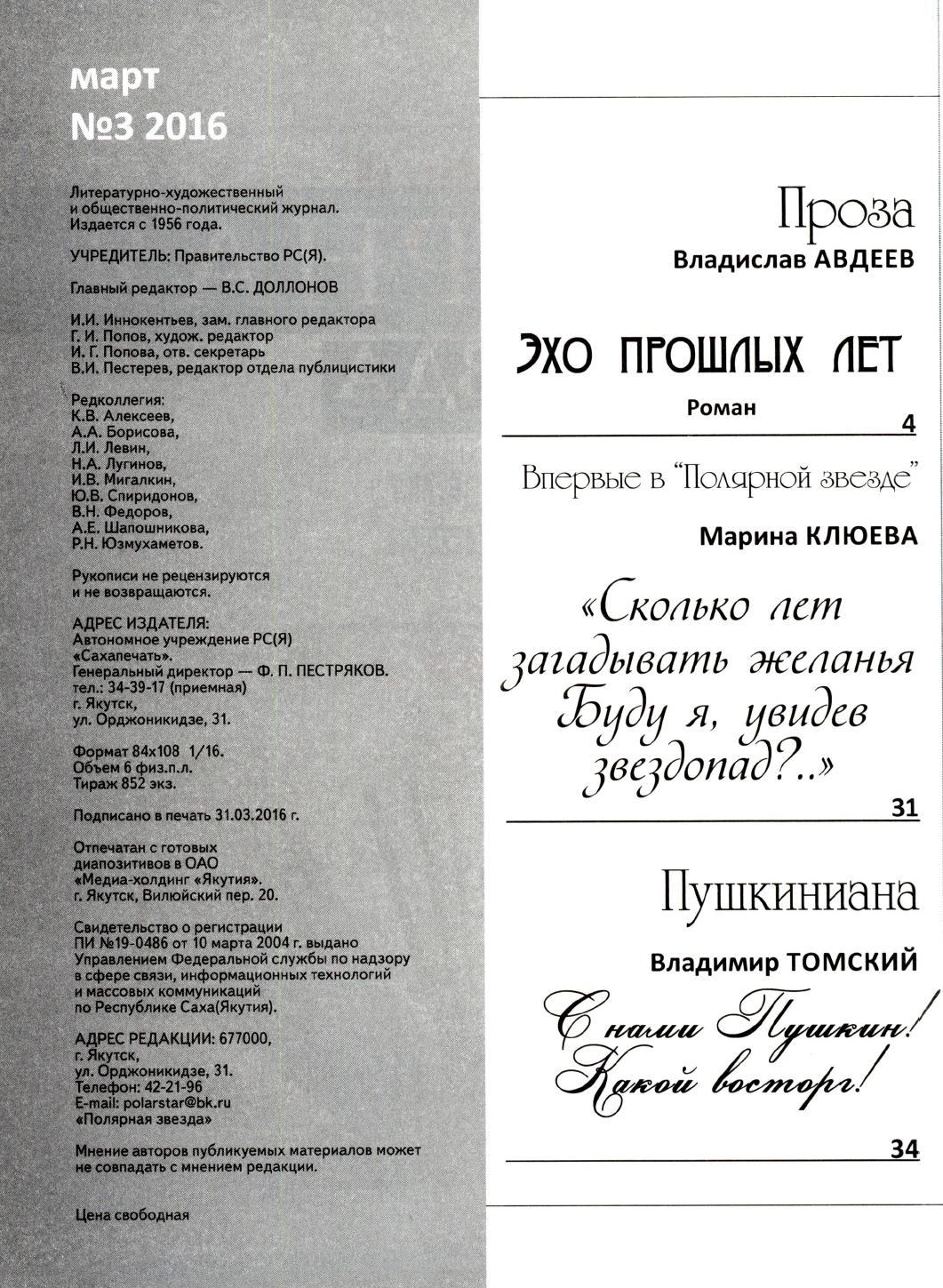 - 2. Полярная звезда: литературно-художественный и общественно-политический журнал, 2016, №2 (февраль)