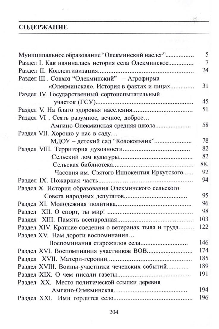 Эта книга содержит исторические данные, начиная с основания деревни Олекминской в далеком 1656 году. Материал, составленный из архивных данных и воспоминаний старожилов и жителей села, рассказывает об истории развития Олекминского наслега. С года основания до сегодняшнего дня прошла целая эпоха - 355 лет. Сегодня это современное село со всей жизненно важной инфраструктурой, люди здесь живут полнокровной и интересной жизнью. История продолжается...