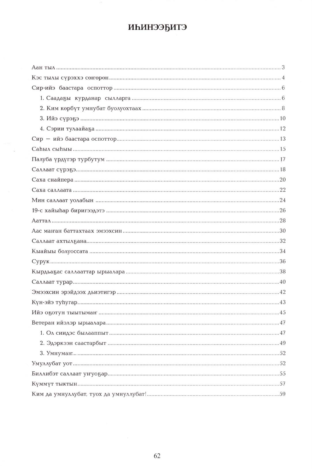 В сборник вошли песни, посвященные подвигу воинов-якутян в Великой Отечественной войне. Книга предназначена учителям музыки, художественным руководителям, участникам самодеятельности, а также молодому поколению в память о героях, павших на полях сражений Великой войны