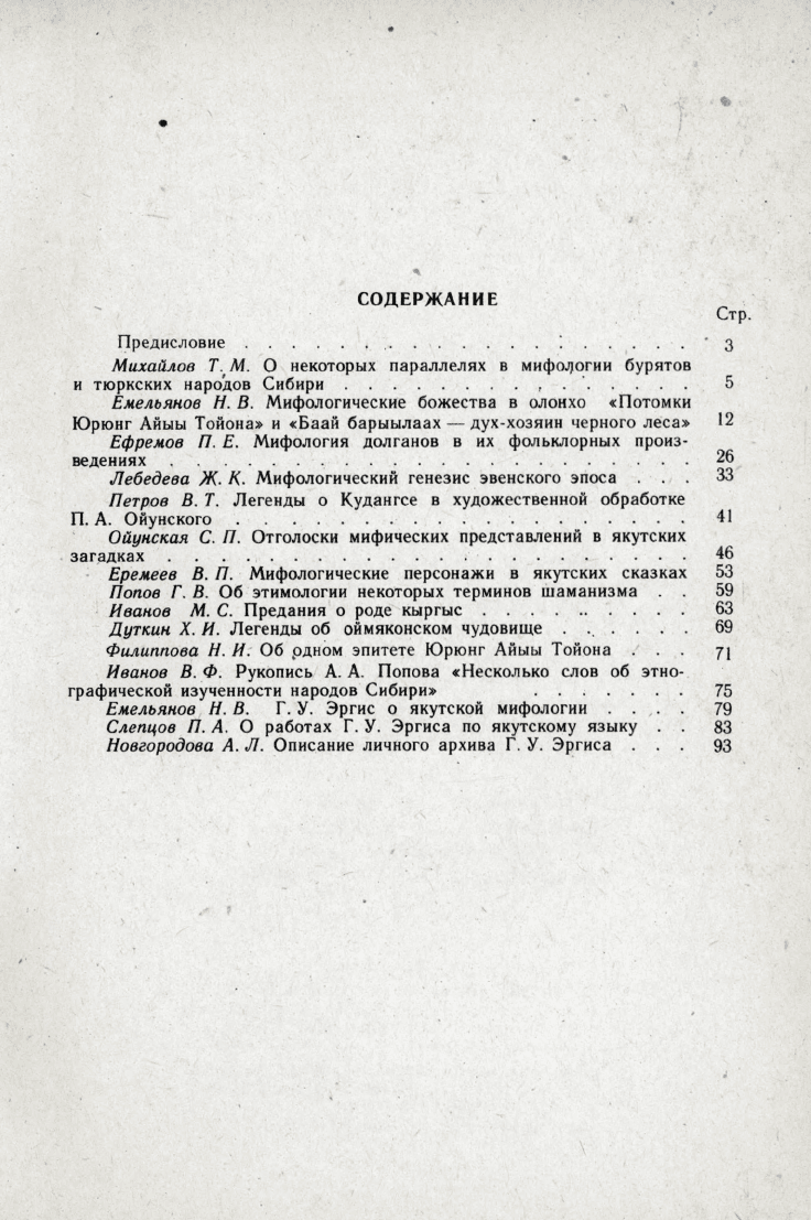 Мифология народов Якутии : сборник научных трудов / Академия наук СССР, Сибирское отделение, Якутский филиал, Институт языка, литературы и истории ; [ответственный редактор В. Т. Петров]. - Якутск : Якутский филиал СО АН СССР, 1980. - 96, [2] с.