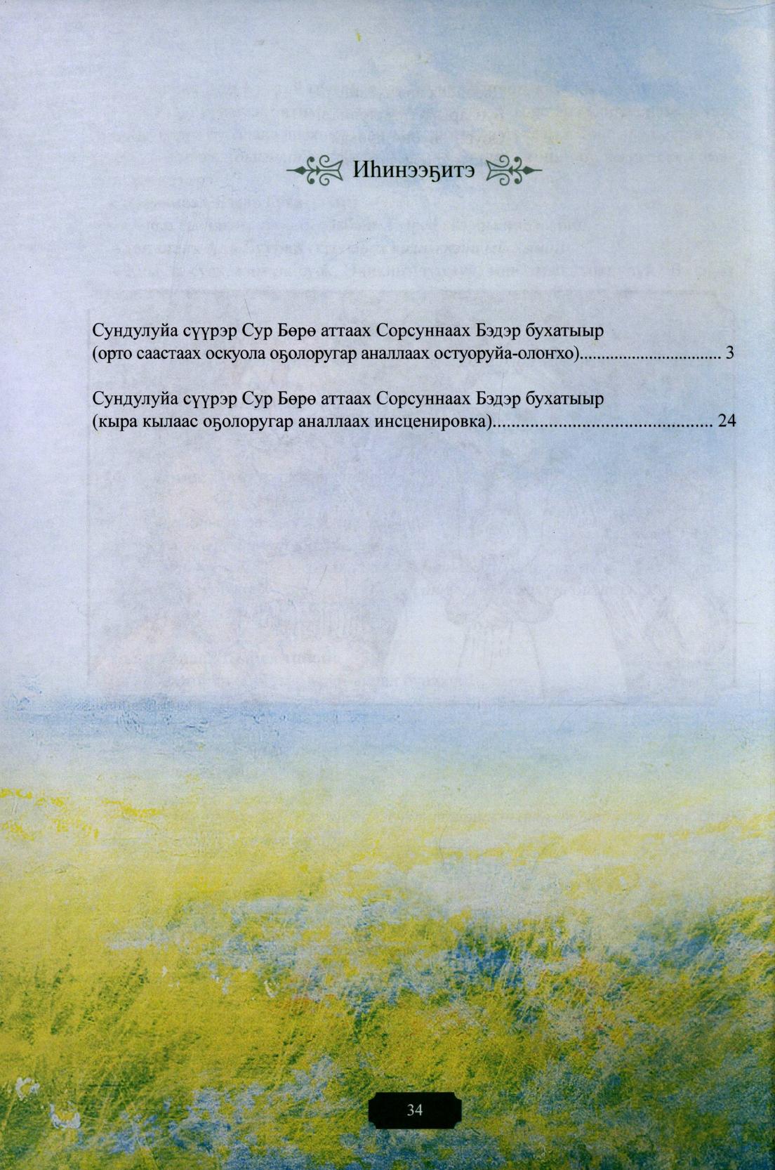 Сундулуйа сүүрэр Сур Бөрө аттаах Сорсуннаах Бэдэр бухатыыр : (орто саастаах оскуола оҕолоругар аналлаах остуоруйа-олоҥхо) / В. А. Парфенова. - Дьокуускай : Дани-Алмас, 2018. - 34 с.