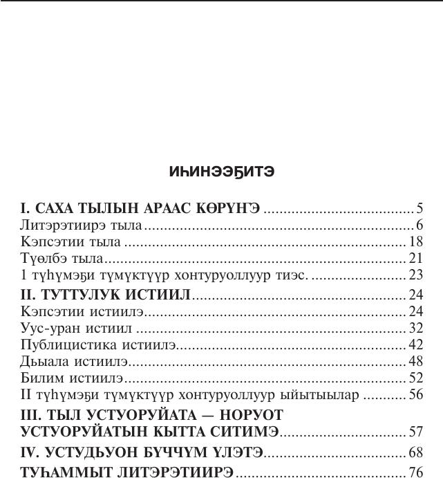 Саха тыла : быраактыка матырыйаала / С. В. Иванова ; Арассыыйа Бэдэрээссийэтин Үөрэх уонна билим министиэристибэтэ, М. К. Аммосов аатынан Хотугулуу-Илиҥҥи бэдэрээлинэй үнүбэрситиэтһ АБ Хотугулуу-Илиҥҥи норуоттар тылларын уонна култуураларын үнүстүүтэ Саха тылын истилиистикэтин уонна нууччалыы-сахалыы тылбаас хаапыдырата. - Якутск : СӨ НБ ЭИ, 2021. - 1 файл (82, [1] с. ; 18,13 Мб). - ("Саха Өрөспүүбүлүкэтин Национальнай библиотекатын электроннай таһаарыылара" серия).