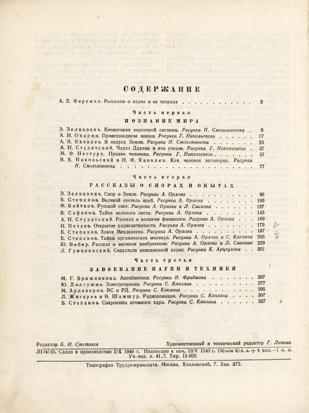 Рассказы о науке и ее творцах / составители: А. А. Яковлев, Л. В. Жигарев ; [вступительная статья А. Е. Ферсмана]. - 2-е изд., испр. и доп. - Москва : Трудрезервиздат, 1949. - 342, [2] с., [6] л. ил.