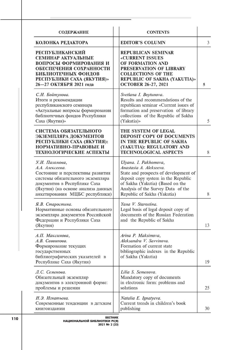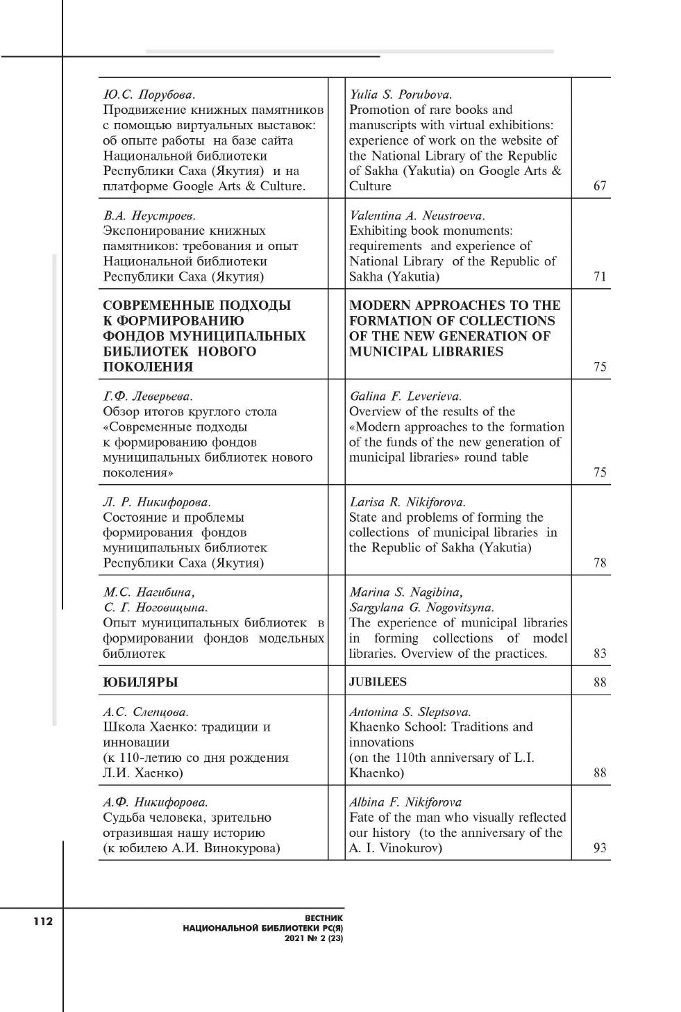 2020, N 2 (21), 2020, N 2 (21), 2020 - 2. Вестник Национальной библиотеки Республики Саха (Якутия): профессиональный журнал, 2020, №N 1 (20)