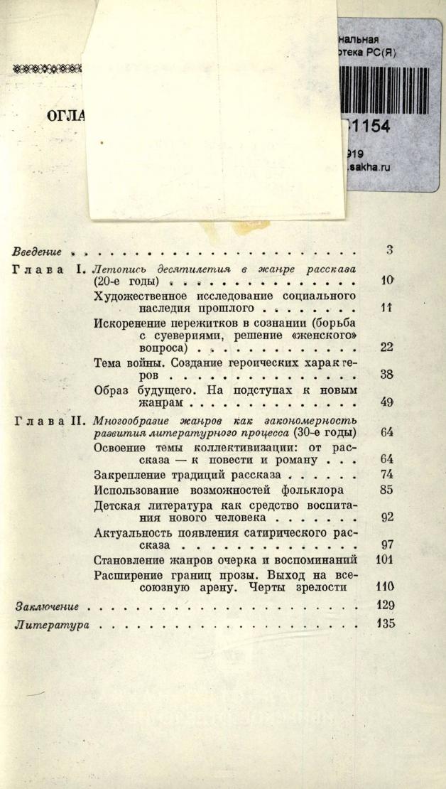 Якутская проза довоенного периода : (жанровое своеобразие, проблематика художественной особенности) / Е. В. Федоров ; ответственный редактор Н. Н. Тобуроков ; Академия наук СССР, Сибирское отделение, Якутский филиал, Институт языка, литературы и истории. - Новосибирск : Наука. Сибирское отделение, 1982. - 137 с.