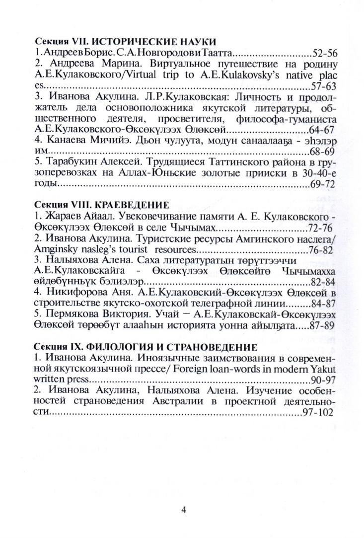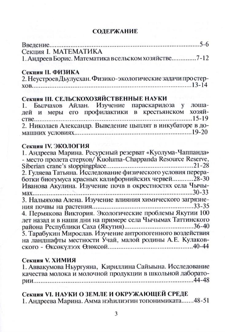 Сельская школа: шаги в науку : сборник тезисов докладов учащихся Чычымахской школы - участников республиканских, Всероссийских очных и заочных научно-практических конференций, 01 сентября 2016 г. - 31 мая 2017 г. / [составители: Д. Е. Иванова, Л. В. Прокопьева ; редактор, автор предисловия Л. В. Прокопьева]. – Ытык-Кюель : Научное общество учащихся МБОО Чычымахская СОШ, 2018. – 103 с.
