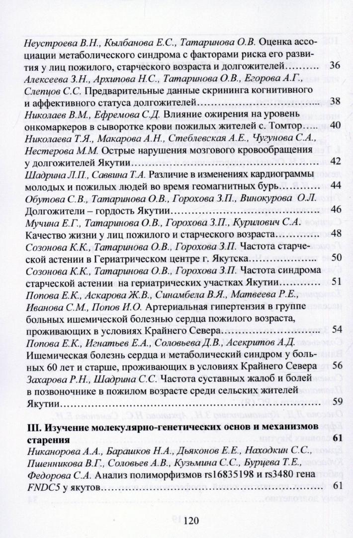 Долголетие в условиях вечной мерзлоты: актуальные проблемы и пути достижения активного долголетия : сборник тезисов межрегиональной научно-практической конференции, г. Якутск, 23 мая 2019 г. / [редакционная коллегия: А. Н. Романова, О. В. Татаринова, С. И. Софронова, А. Г. Егорова ; автор предисловия А. Н. Романова [и др.]. – Якутск : [б. и.], 2019. – 121, [1] с.