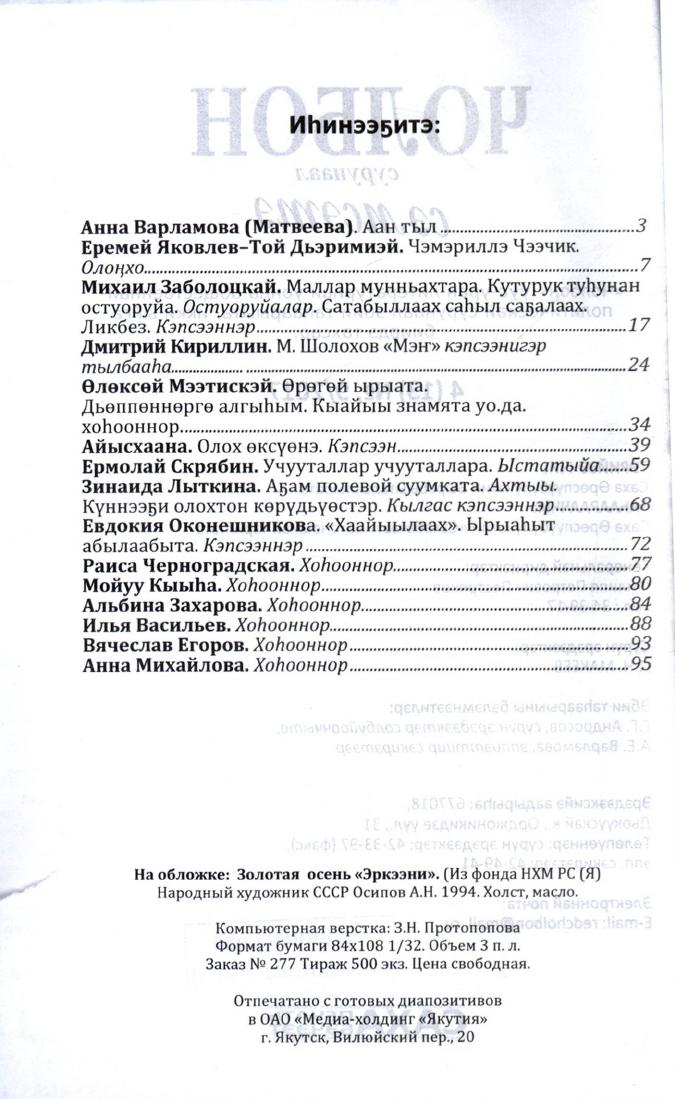 Чолбон сурунаал сэмсэтэ : "Чолбон" уус-уран литературнай уонна общественнай-политическай сурунаал эбии таһаарыыта / . - Дьокуускай : Сахапечать, 2017-.