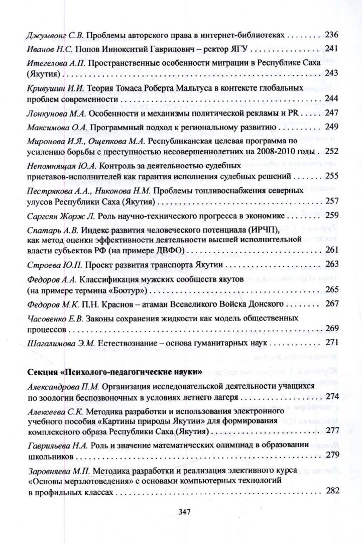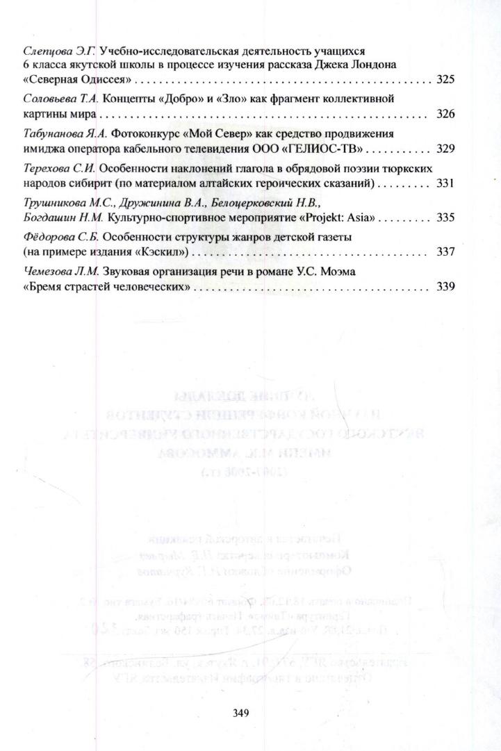 М. К. Аммосова. Научная конференция студентов.Лучшие доклады научной конференции студентов Якутского государственного университета имени М. К. Аммосова (2007-2008 гг.) / [редколлегия: Фридовский В. Ю., Кузьмина Р. А., Винокуров А. А.]. - Якутск : Издательство ЯГУ, 2008. - 349 с.