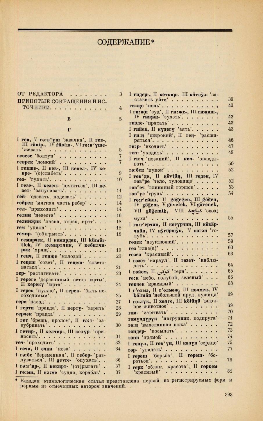 Этимологический словарь тюркских языков : общетюркские и межтюркские лексические основы … / Акад. наук СССР, Ин-т языкознания. - Москва : Наука, 1974-2000. - 27 см. [3]: Общетюркские и межтюркские основы на буквы "В", "Г" и "Д". - 1980. - 394, [1] с. Библиогр. в примеч.