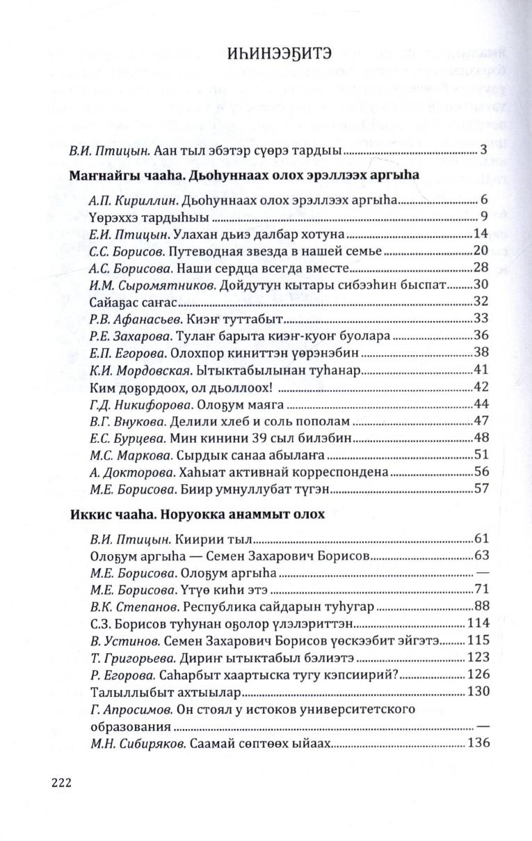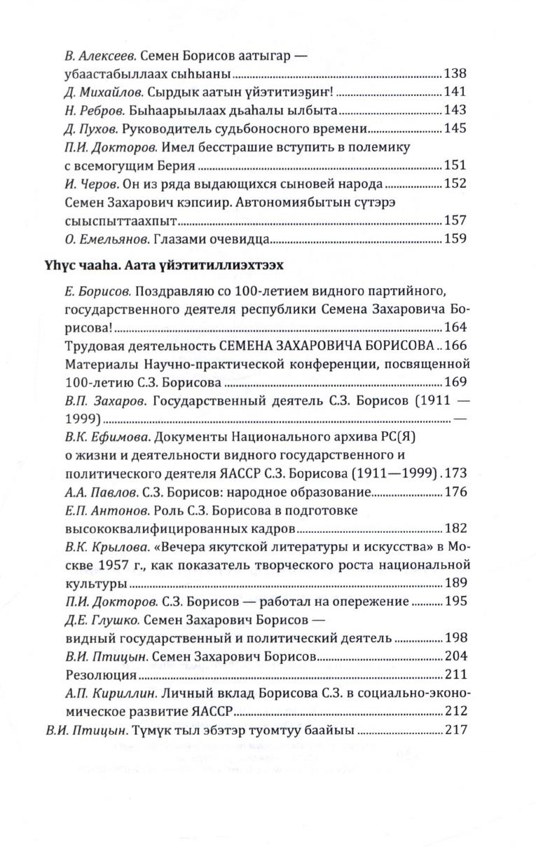 Олоҕум аргыһа - Семен Захарович Борисов : [ахтыылар / хомуйан оҥордо В. И. Птицын]. - Дьокуускай : ГРАФПРЕСС, 2014. - 222, [1] : ил., портр. ; 22 см. - 700 экз.