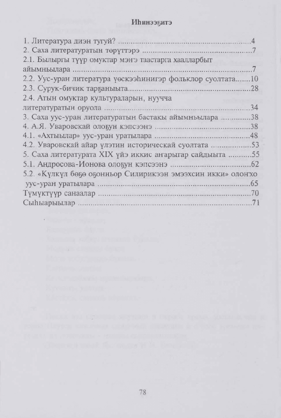Саха литературатын историятын XIX үйэ ортотуттан XX үйэ саҕаланыытыгар диэри кэмин туһунан лекциялар курстарыгар саха литературата хаһан, хайдах үөскээбитин, бастакы литературнай айымньылар, кинилэр автордарын А. Уваровскай уонна М. Андросова-Ионова тустарынан кэпсэнэр