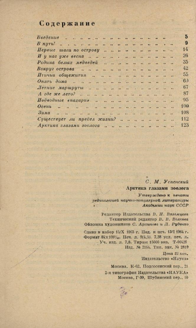 Арктика глазами зоолога / С. М. Успенский ; ответственный редактор Г. П. Дементьев ; фото В. Я. Паровщикова. - Москва : Наука, 1964. - 144 с.