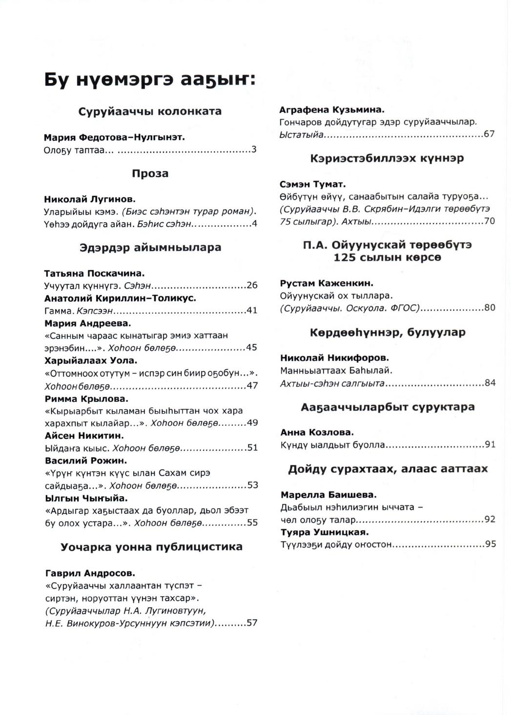- 2. Чолбон: уус-уран литературнай уонна общественнай-политическай сурунаал, 2018, №2