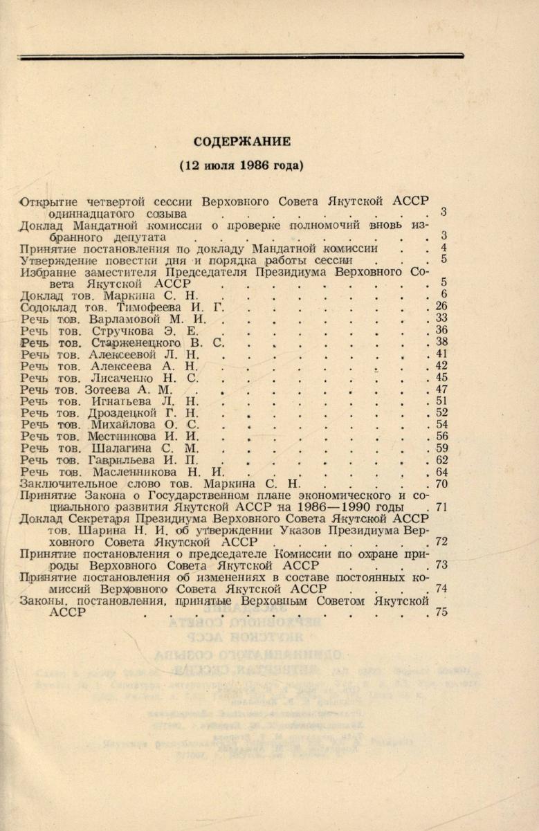 Заседания Верховного Совета Якутской АССР одиннадцатого созыва четвертая сессия (12 июля 1986 года): стенографический отчет