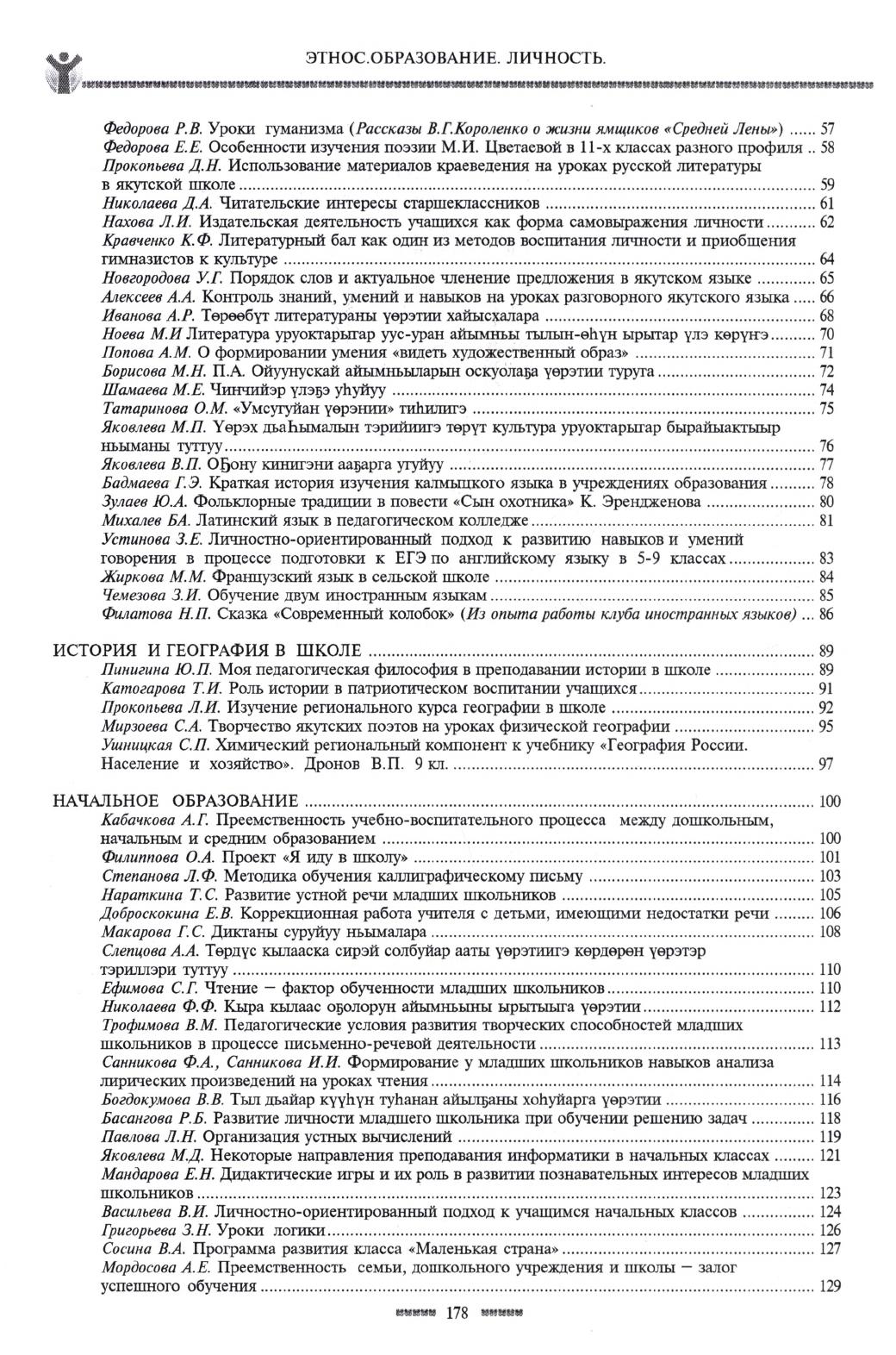 "Этнос. Образование. Личность" = "Etnos. Education. Personality" / Институт повышения квалификации работников образования ; [составители: Габышева Ф. В., Чоросова О. М., Герасимова Р. Е.]. - Якутск : Издательство ИПКРО, 2003-. - 30 см.
