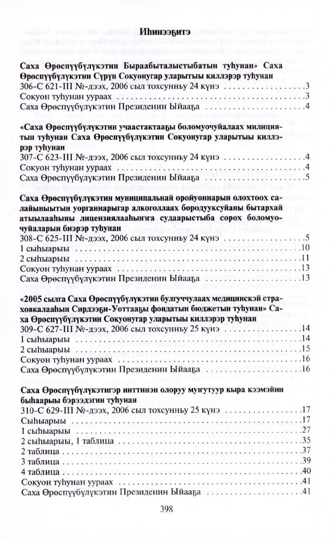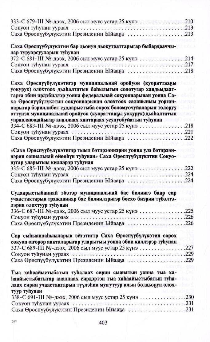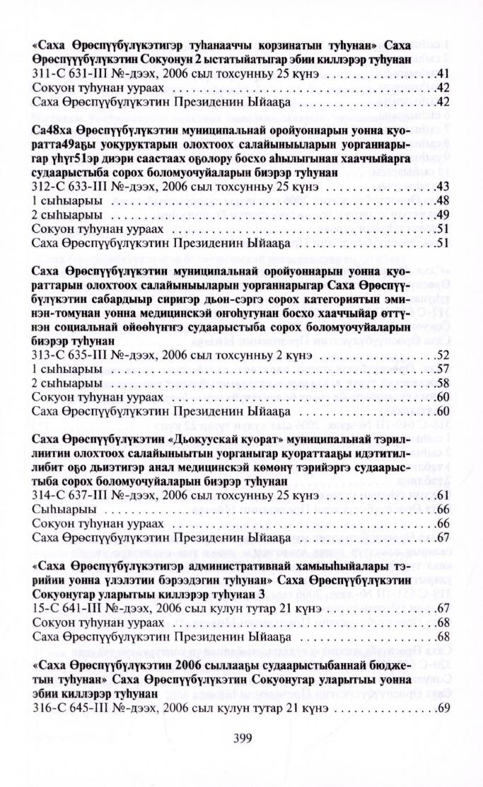 Саха Өрөспүүбүлүкэтин сокуоннара, 2006 сыл