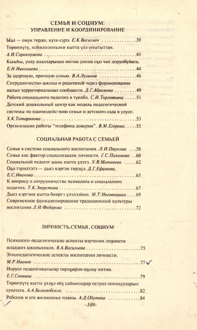 Семья и социум: проблемы и перспективы : сборник материалов республиканской научно-практической конференции / [научный редактор Т. И. Степанова ; составители: Е. С. Никифорова, А. Д. Обутова]. - Якутск : ИПКРО РС(Я), 1998. - 109, [1] с.