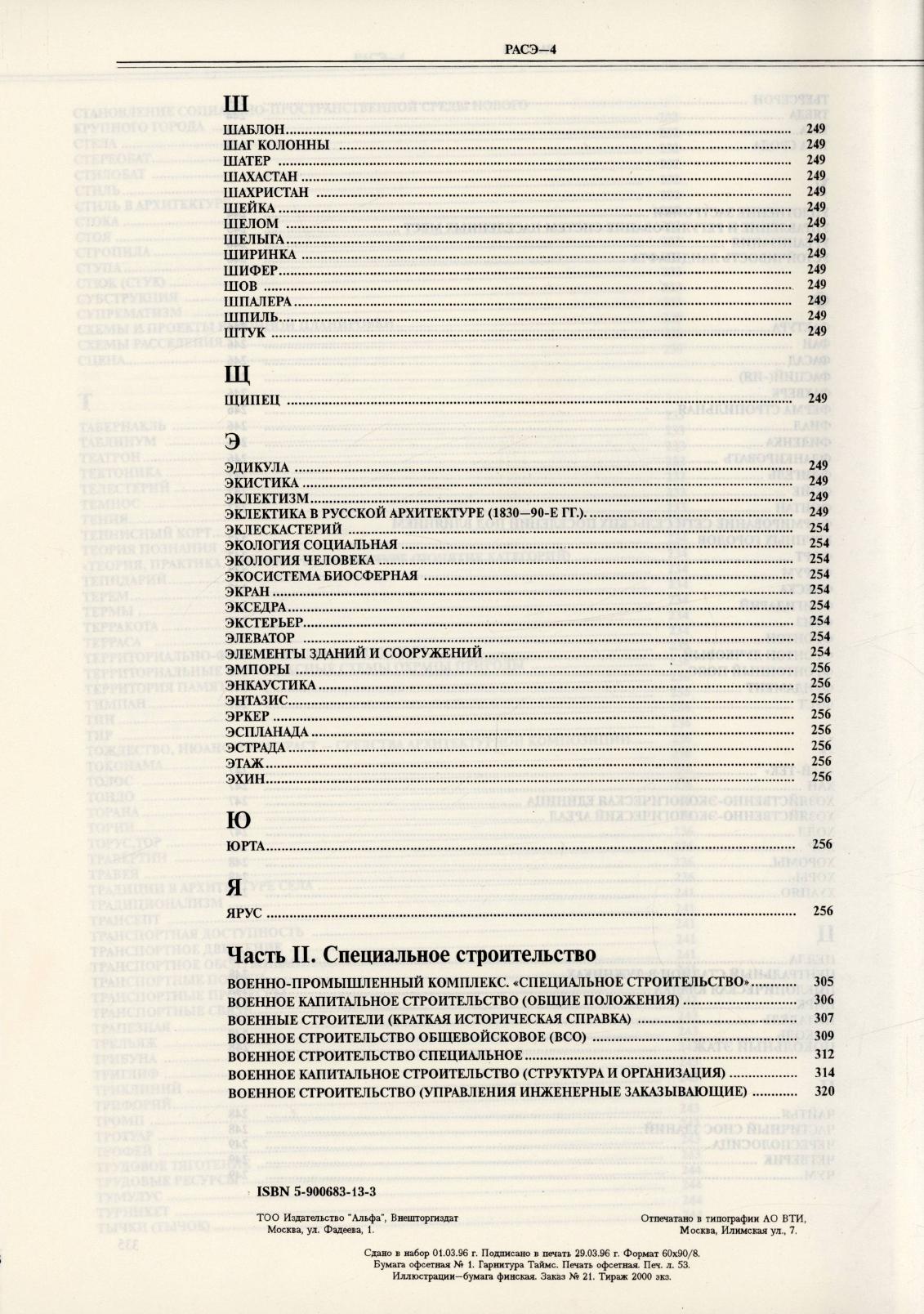 Российская архитектурно-строительная энциклопедия : [в 4 томах] / главный редактор Е. В. Басин ; главная редакционная коллегия: В. А. Алексеев, А. А. Бабенко, В. А. Балакин [и др.]. - Москва : Триада, 1995-