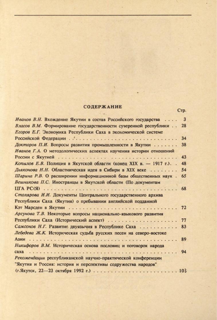 Якутия и Россия : 360 лет совместной жизни : (материалы республиканской научно-практической конференции Якутск, 22-23 октября 1992 г.) / Российская Академия наук, Сибирское отделение, Якутский институт языка литературы и истории и др. ; [редколлегия: В. Н. Иванов (ответственный редактор) и др.]. - Якутск : Якутский научный центр СО РАН, 1994. - 106, [2] с.