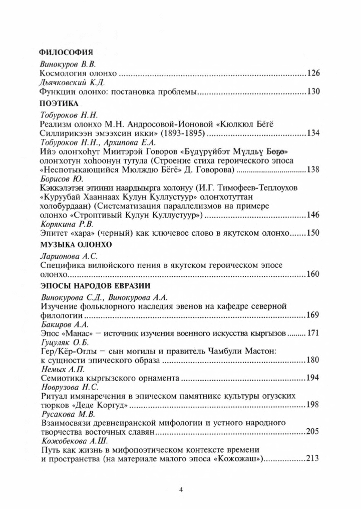 Олонхо в семье героических эпосов Евразии = Олоҥхо - Евразия эпоһын иллээх эйгэтигэр : материалы всероссийской научно-методологического семинара "Эпос народов Северо-Востока Российской Федерации", Якутск, 26.11.2012 г. ; [составители: Л. С. Ефимова, кандидат филологических наук, доцент, Н. С. Шкурко, кандидат философских наук, доцент ; научный редактор В. В. Илларионов, доктор филологических наук, профессор]. - Якутск : ИД СВФУ, 2012. - 223 с.