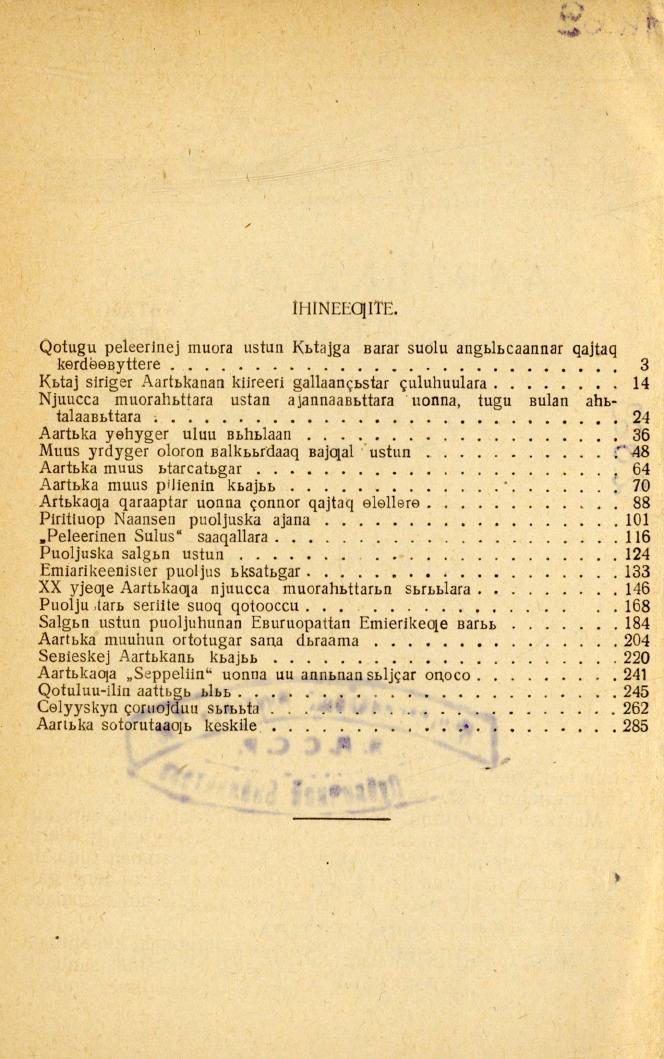 И. Аартыка муус сүрэҕэр : ыраах Хоту сирдэргэ айаннар (16-с үйэттэн ыла) / А. У. Лиэбэдьэп ; хатыылаан оҥоһуллубут 2-с таһаарыыттан К. С. Боппуок тылб. - Москуба : Судаарыстыба үөрэх пэдэгиэгикэ кинигэтин пэчээтэ, 1937. - 287 [1] с.