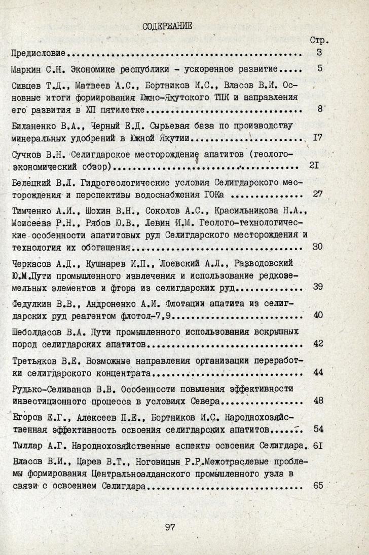 Проблемы освоения Селигдарского месторождения апатитов : сборник научных трудов / Академия наук СССР, Сибирское отделение, Якутский филиал, Институт экономики комплексного освоения природных ресурсов Севера, ПГО Якутскгеология ; [редколлегия: Т. Д. Сивцев, Егоров Е. Г. и др.]. - Якутск : Книжное издательство, 1986. - 97, [1] с.