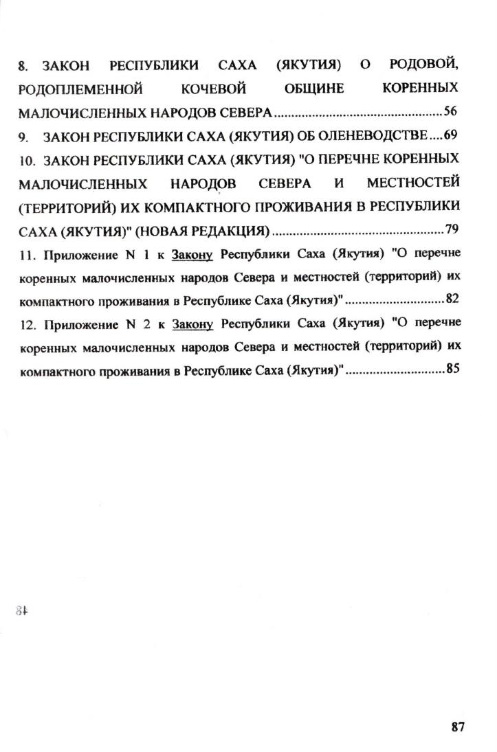 Сборник нормативных правовых актов по правам коренных малочисленных народов Севера Республики Саха (Якутия) : (извлечения) / [составители: К. В. Роббек, И. П. Захарова ; ответственный редактор А. Н. Слепцов]. - Якутск : ИПМНС СО РАН, 2006. - 87 с.