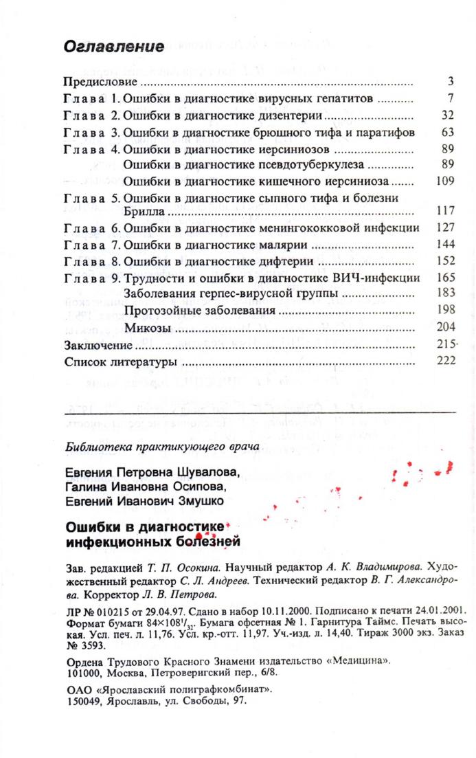 Ошибки в диагностике инфекционных болезней / Е. П. Шувалова, Г. И. Осипова, Е. И. Змушко. - 4-е изд., перераб. и доп. - Москва : Медицина, 2001. - 222, [2] с.