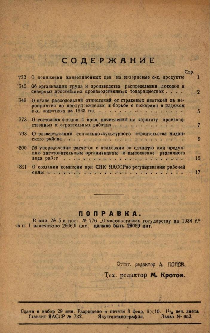 Якутская АССР. Совет народных комиссаров. Сборник ... важнейших постановлений Совета Народных Комиссаров Якутской АССР ... - Якутск : Якутсгостипография, 1933-. 1933, Вып. N 6, c 23 ноября по 29 декабря. - 1933. - 18 с.
