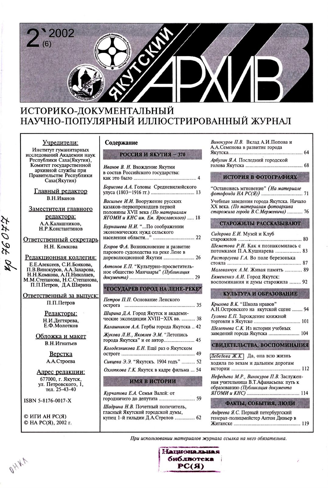- Периодические издания Якутии (конец XIX – XXI вв.) > Журналы > Якутский архив > 2002,