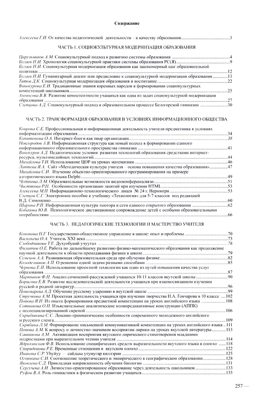 От качества педагогической деятельности - к качеству образования : (сборник статей) / Министерство образования Республики Саха (Якутия), ГОУ ДПО "Институт развития образования и повышения квалификации", Ассоциация молодых ученых и педагогов-исследователей Якутии ; [составители: С. Е. Коврова, кандидат педагогических наук, Н. Н. Винокурова ; научный редактор Г. И. Алексеева, доктор педагогических наук]. - Якутск : ИРОиПК, 2011. - 257, [2] с.