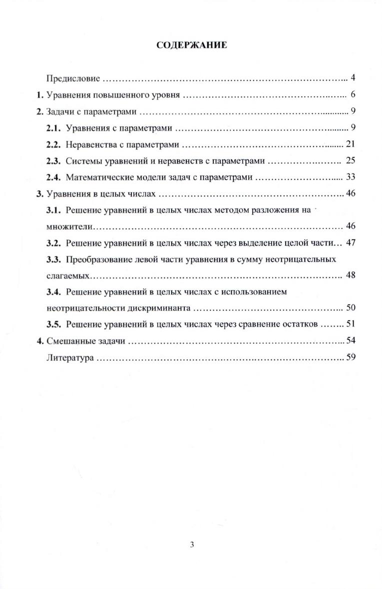 В данном пособии рассмотрены решения различных типов уравнений, систем и неравенств с параметром. Представлены методы решения задач в целых числах высокого уровня сложности. Материалы пособия могут быть использованы учителями математики при подготовке к ЕГЭ, при работе в профильных классах, а также пособие будет полезно выпускникам школ