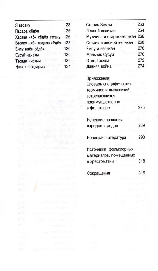 Ямидхы" лаханаку" = Сказы седой старины : Ненецкая фольклорная хрестоматия / Упр. культуры Администрации Таймыр. (Долгано-Ненецкого) авт. окр., Таймыр. окр. центр нар. творчества ; [сост. К. И. Лабанаускас ; ред. ненец. текстов: Дюкарева А. И. и др.]. - Москва : Русская литература, 2001. - 319 с.