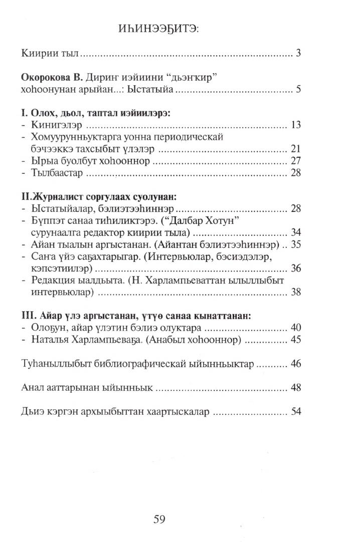 "Мин тылым - алгыһым..." : биобиблиографическай ыйынньык / [хомуйан оҥордулар: О. С. Винокурова, Е. И. Захарова ; редактор И. В. Никитина]. - Дьокуускай, 2002. - 59 с.