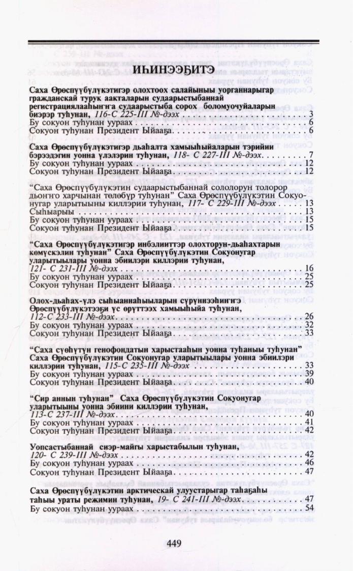 Саха Өрөспүүбүлүкэтин Ил Түмэнэ ... сылга ылыммыт сокуоннарын хомуурунньуга : / Российскай Федерация, Саха Өрөспүүбүлүкэтэ. - Дьокуускай : Сахаполиграфиздат, 2004-2006.