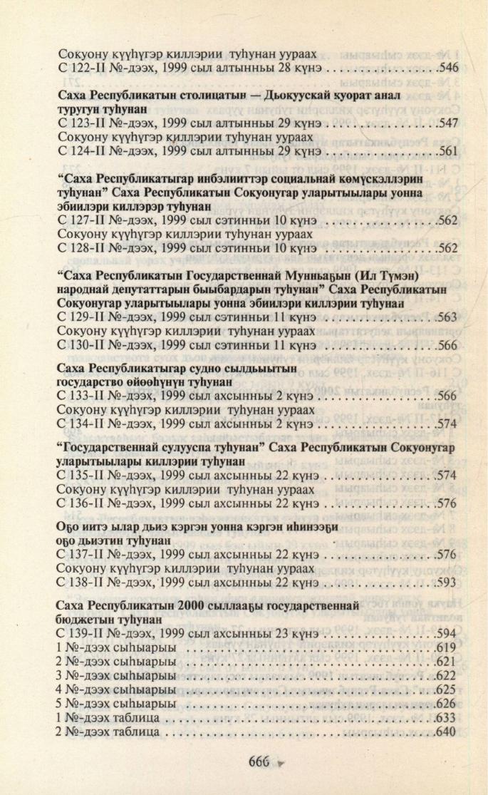 Саха Республикатын иккис ыҥырыылаах Государственнай Мунньаҕа (Ил Түмэн) 1999 сылга ылыммыт сокуоннарын хомуурунньуга