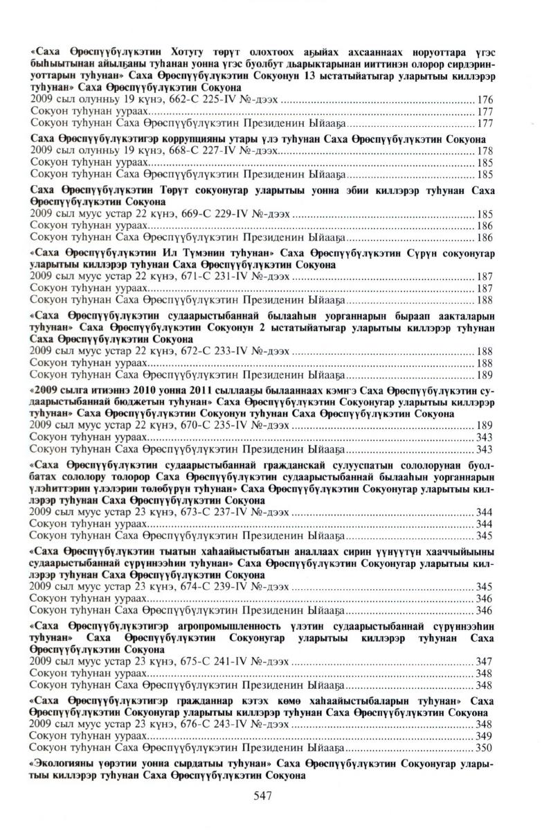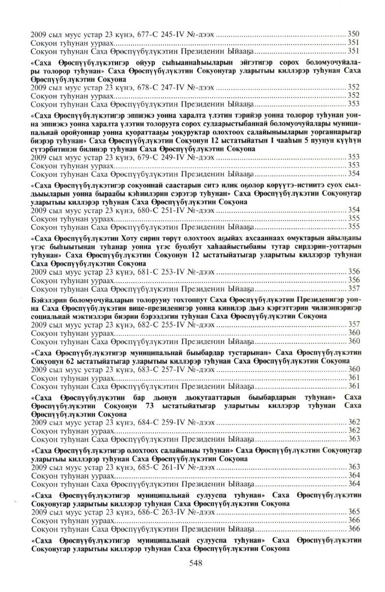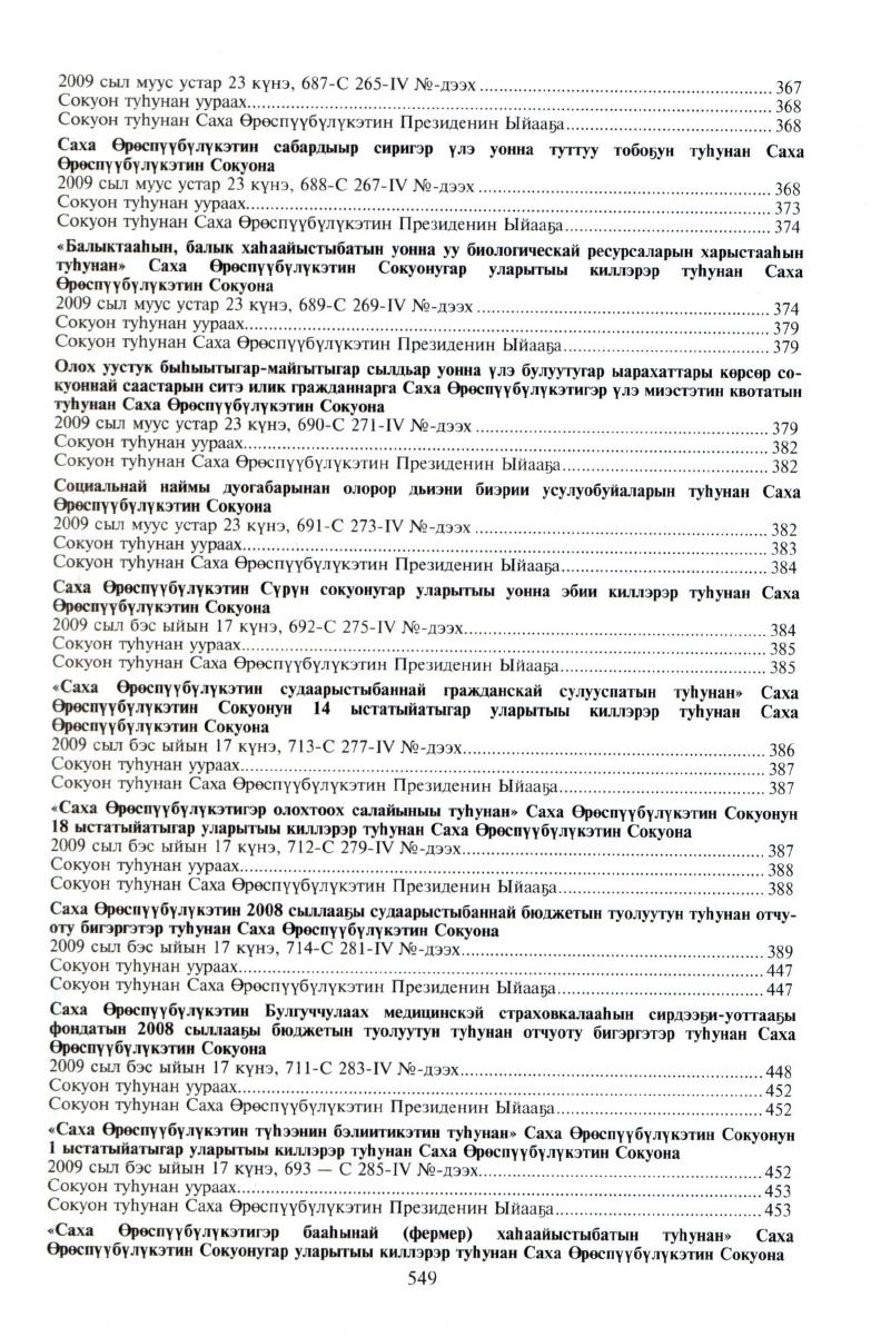 Саха Өрөспүүбүлүкэтин төрдүс ыҥырыылаах Ил Тумэнэ 2009 сылга ылыммыт сокуоннара