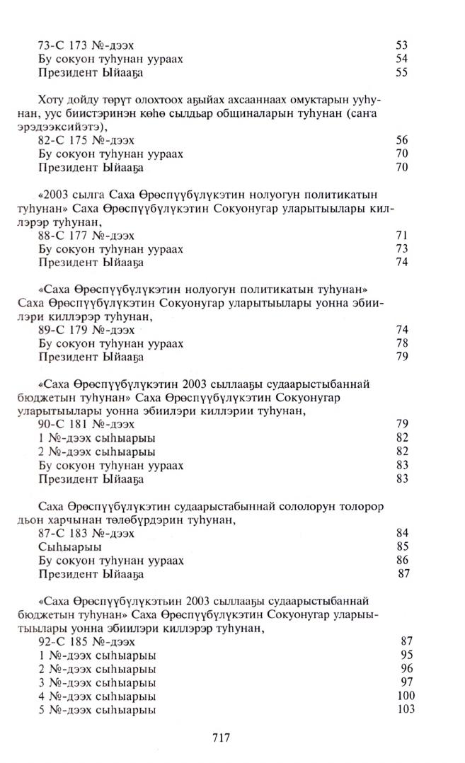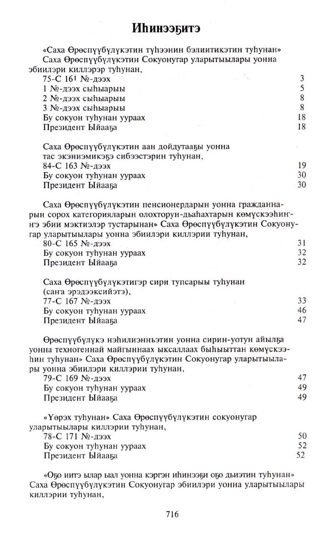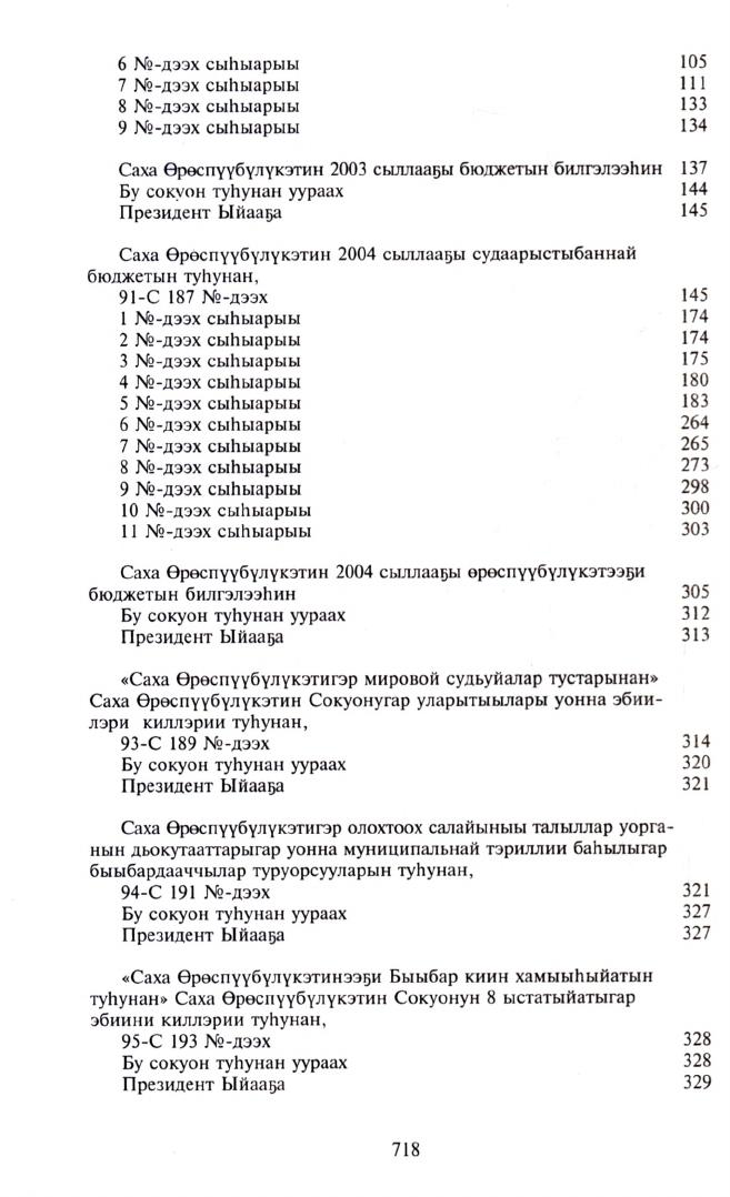 Сокуоннар. Саха Өрөспүүбүлүкэтин Ил Түмэнэ ... сылга ылыммыт сокуоннарын хомуурунньуга / Российскай Федерация, Саха Өрөспүүбүлүкэтэ. - Дьокуускай : Сахаполиграфиздат, 2004-2006. - 21 см. Т. 2. - 2004. - 583 с.