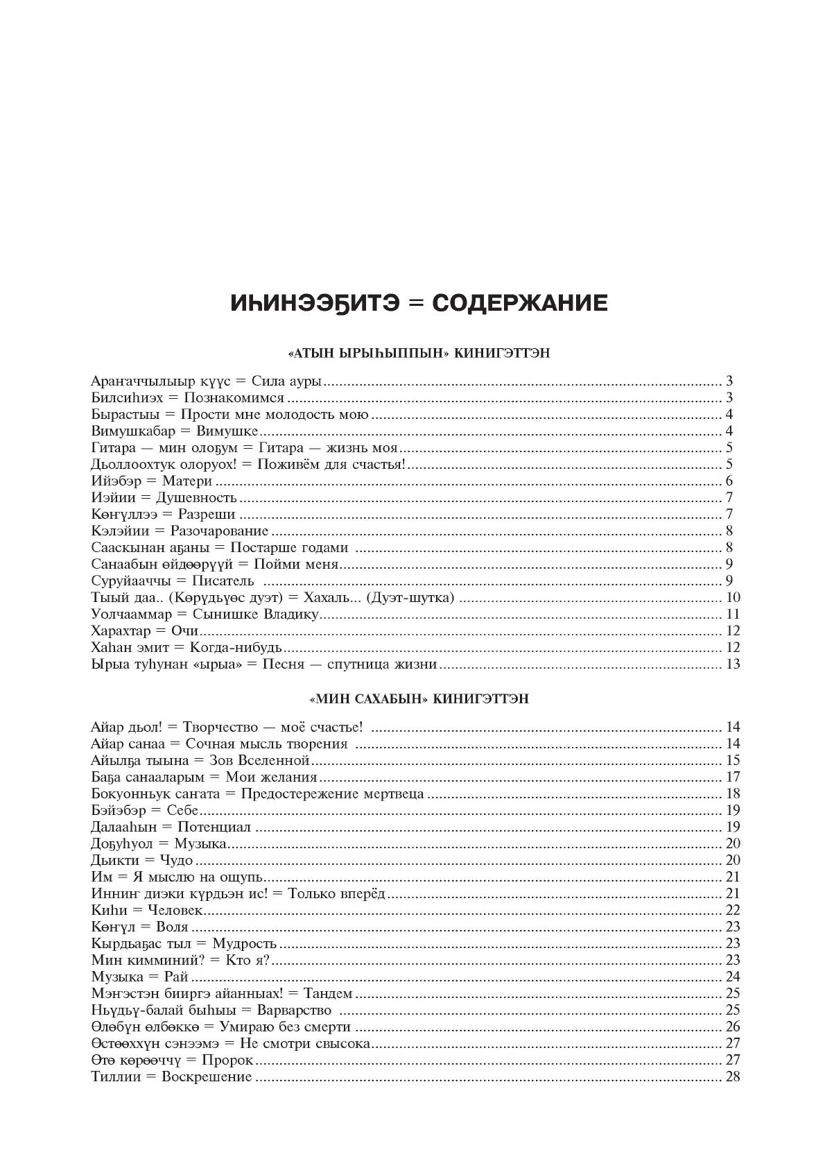 В книгу вошли 188 переведенных стихов известного поэта и музыканта Виталия Власова. Перевод с якутского на русский сделан профессором СВФУ, педагогом Т. И. Петровой. Цель книги — предоставление возможности выхода в иное языковое культурное пространство произведений, отражающих внутренний мир современного саха