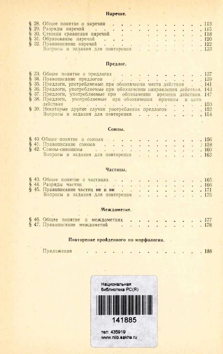 Русский язык : учебное пособие для 6-го класса якутской школы / Т. И. Петрова, П. И. Егоров, М. Е. Михалев ; под редакцией К. Ф. Федорова. - 2-е изд., перераб. - Якутск : Якутское книжное издательство, 1975. - 192 с.