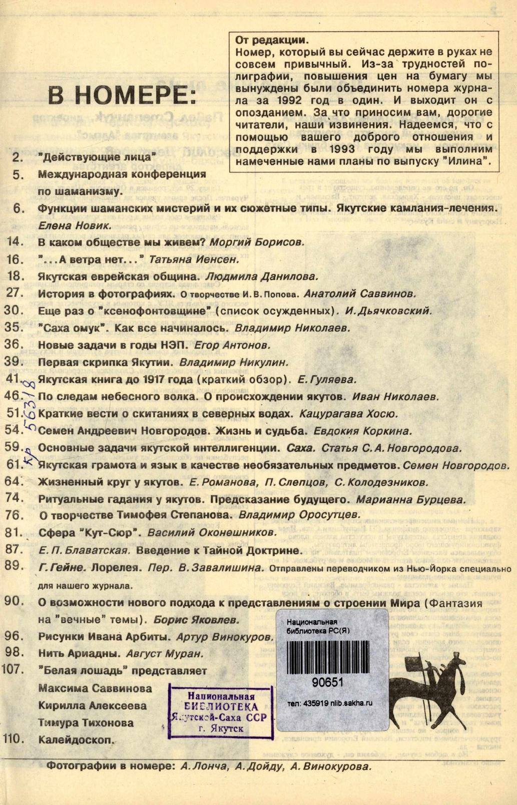Илин : историко-географический, культурологический журнал / Министерство культуры Якутская-Саха ССР, Союз "Саха омук". - Якутск : 1991
