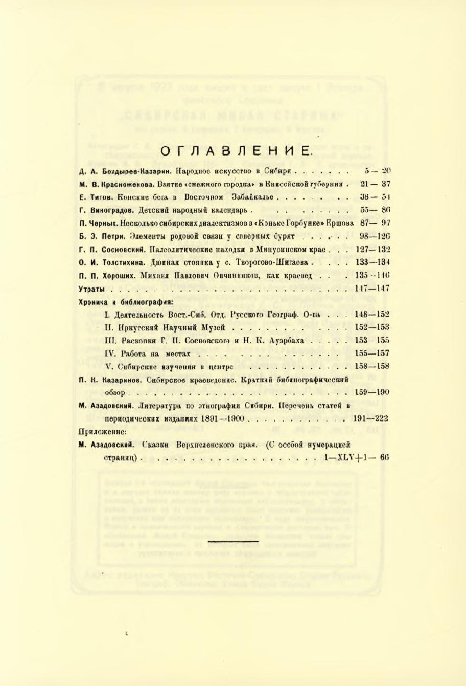 Сибирская живая старина : этнографический сборник : [в 4 томах / Вост.-Сиб. отд. Рус. геогр. о-ва ; под ред. М. К. Азадовского, Г. С. Виноградова]. - Репр. изд. 1923-1929 годов. - Санкт-Петербург : Альфарет, 2008. - 25 см. - (Серия "Периодические и продолжающиеся издания, альманахи, сборники"). Т. 1, вып. 1, 2. - LVI, [3] л. ил., портр., 178, 222, [2] л. цв. ил., XLV, 66 с.
