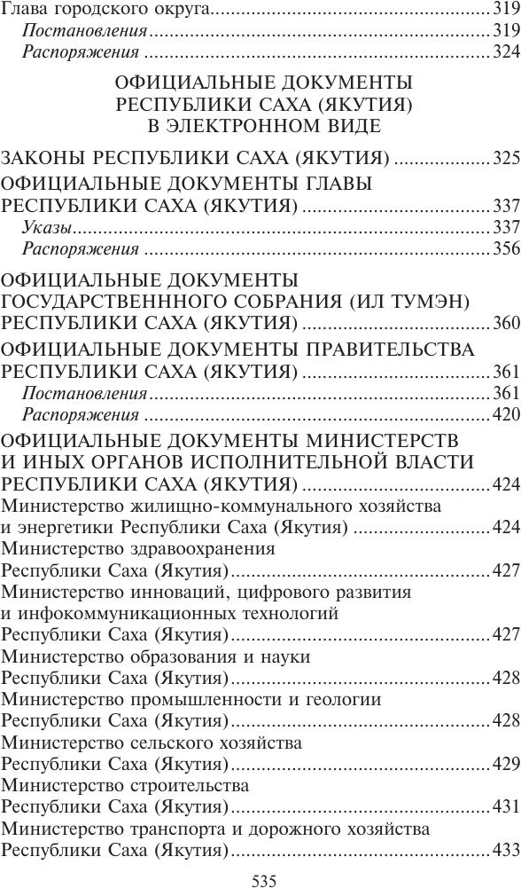 Законодательство Республики Саха (Якутия) : государственный библиографический указатель = Саха Өрөспүүбүлүкэтин Сокуонтаһаарыы : судаарыстыбаннай библиографическай ыйынньык / Министерство культуры и духовного развития Республики Саха (Якутия), Национальная библиотека Республики Саха (Якутия), Национальное библиографическое агентство. - Электрон. дан. - Якутск : СРИД НБ РС(Я), 2018-. 2022, N 1 (1-1551). - 2022. - 1 файл (536, [5] с.