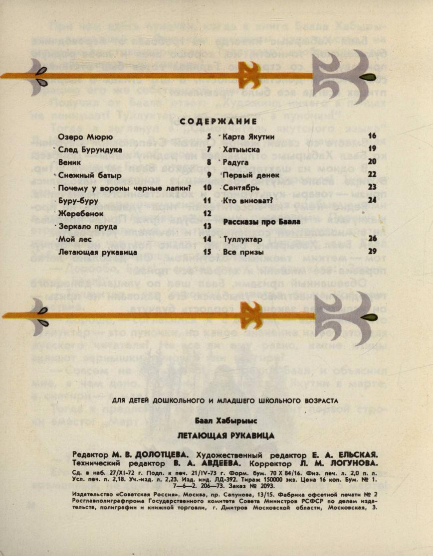 Летающая рукавица : [cтихи, рассказы : для дошкольного и младшего школьного возраста] / Баал Хабырыыс ; перевод с якутского Н. Глазкова ; иллюстрации Ю.Зальцман. - Москва : Советская Россия, 1973. - 28, [2] с.